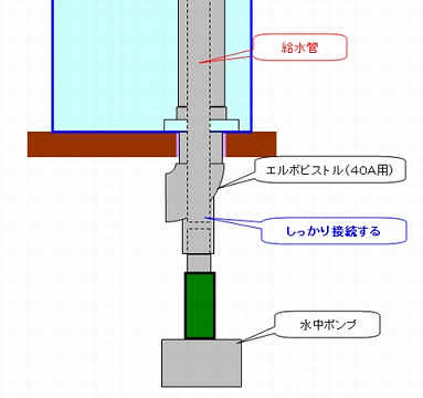「給水管」が「エルボピストル管の受け口」にしっかり接続できるように