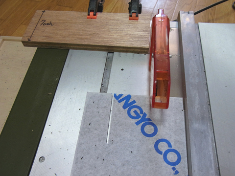 こんな感じで、「スーパーサーキュラーソウテーブル」にストッパーとなる木をセットしました。