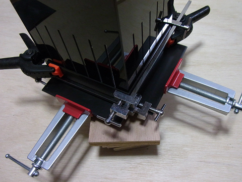 「コーナークランプ」や「ハタ金(ハタガネ)」などを使って仮組みしました。