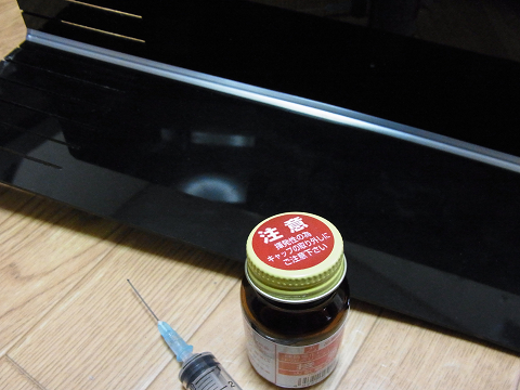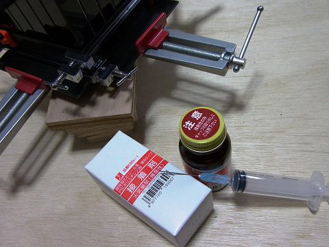 「塩ビ専用接着剤」を「接着剤用注射器」で汲み上げました。
