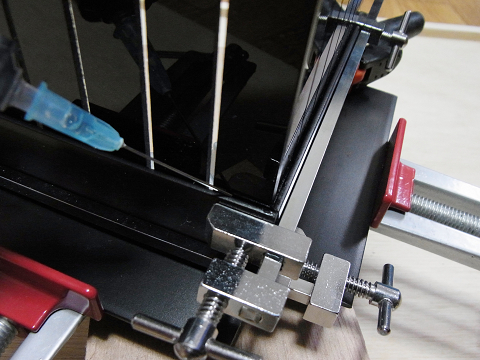 接着剤が流れ込みにくくなるので、締め付ける強さを調節しています!!